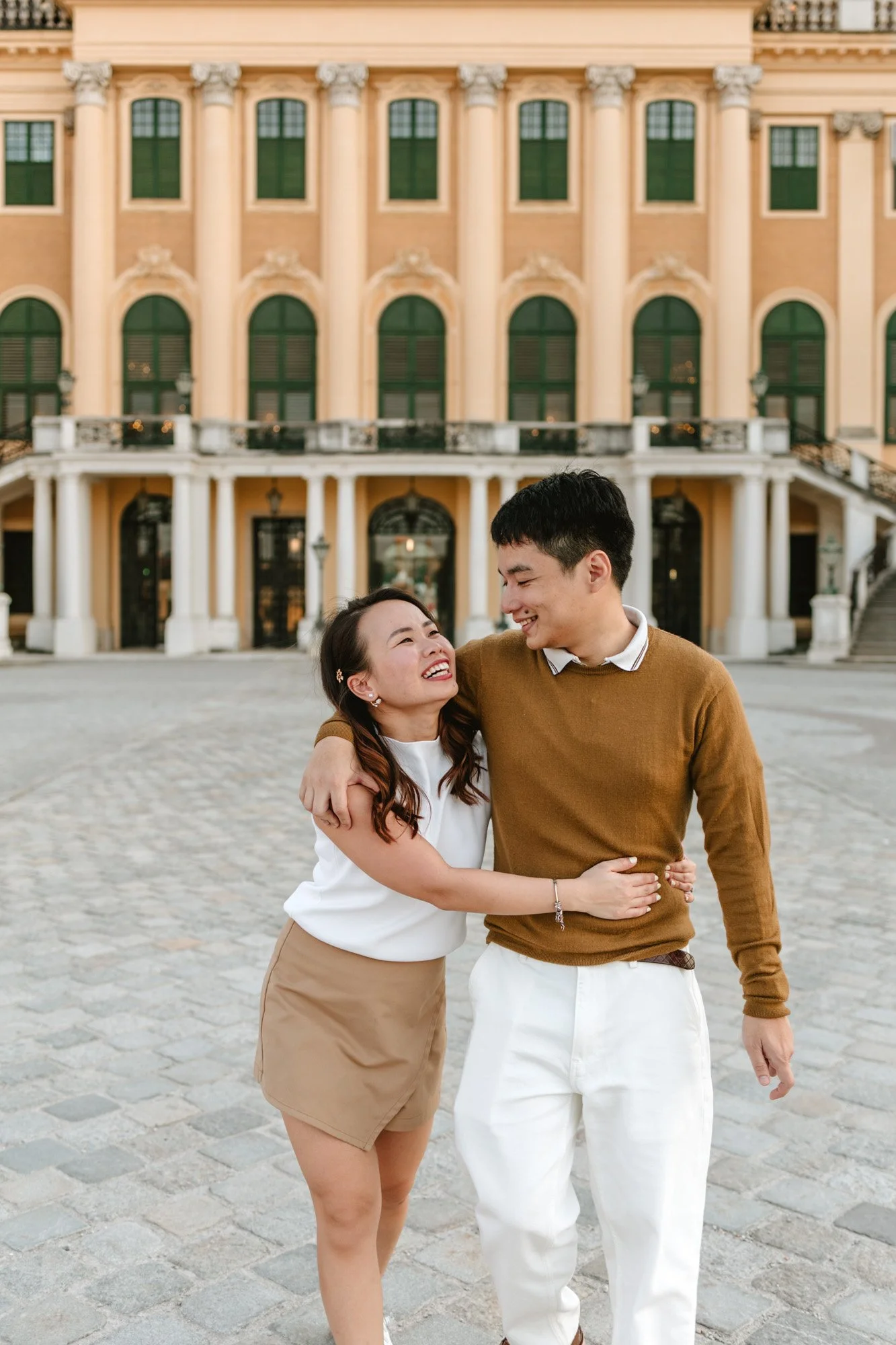Almost every season is great for engagement in Schönbrunn Gardens, in spring and summer, when flowers are blooming, place looks incredibly charming, in autumn colors are different, but beautiful too, however, even in winter, Schonbrunn Gardens has its own atmosphere, because of the Christmas Market and huge Christmas tree in front of the palace.